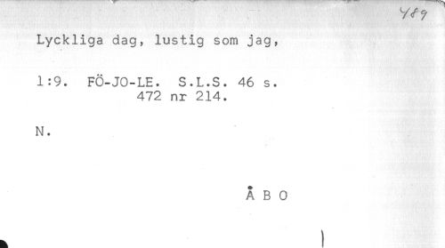 //// / <? 7 //// Lyckliga dag, lustig som jag, //// * //// 1:9. FÖ-JO-LE. S.L.S. 46 s. //// 472 nr 214. //// * //// N. //// ! ////