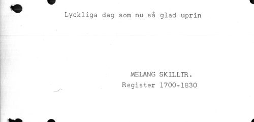 //// Lyckliga dag som nu så glad uprin //// K'' //// * //// . //// MELANG SKILLTR. //// Register 1700-1830 ////