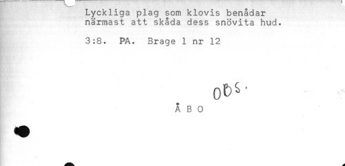 //// Lyckliga plag som klovis benadar //// närmast att skåda dess snovita hud. //// 3:8. PA. Brage 1 nr 12 //// * //// a //// A B O ////