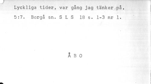 //// Lyckliga tider, var gång jag tänker på, //// 5:7. Borgå sn. S L S 18 s. 1-3 nr 1. //// i //// ÅBO //// ! ////