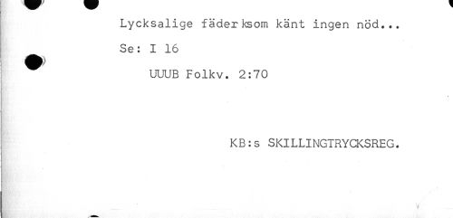 //// Lycksalige fäder ksom känt ingen nöd... //// Se: I 16 //// ^ UUUB Folkv. 2:70 //// KB:s SKILLINGTRYCKSREG. ////