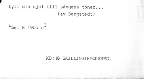 //// Lyft din själ till sångens toner*.. //// (av Bergstedt) //// ^Se: E 1905 u^ //// KB: iS SKILLINGTRYCKSREG. ////