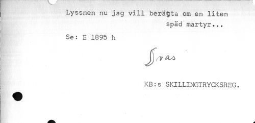 //// Lyssnen nu jag vill berätta om en liten //// HK,;!,', ''- ' ".'- //// späd martyr... //// Se: E 1895 h //// . //// KB:s SKILLINGTRYCKSREG. ////