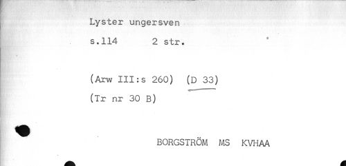//// ; Lyster ungersven //// s.114 2 str. //// (Arw III:s 260) (D 33) //// (Ir nr 30 B) //// BORGSTRÖM MS KVHAA ////