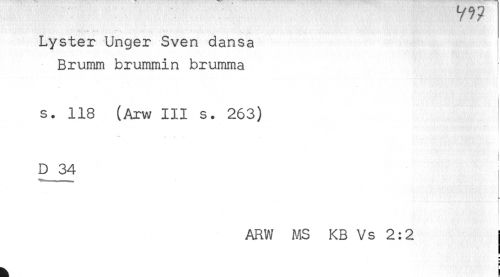 //// Lyster Unger Sven dansa //// Brumm brummin brumma //// s. 118 (Arw III s. 263) //// D 34 //// i //// ARW MS KB Vs 2:2 //// H //// i //// h i ////
