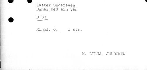 //// Lyster ungersven //// Dansa med sin vän //// ^ D 33^ //// Ringl. 6. 1 str. //// . //// N. LILJA JULBOKEN ////