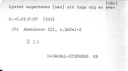 //// Lyster ungerssven (nen) att taga sig en sven //// H.-C.VI:F:57 (333) //// Jfr Arwidsson III, s.260*1-2 //// H-CAVALL-STEPHENS KB ////