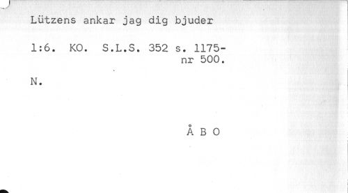 //// Lutzens ankar jag dig bjuder //// 1:6. KO. S.L.S. 352 s. 1175- //// nr 500. //// * //// N. //// MåCHHB f //// ' . ; ' I //// i //// I //// ' ^ . i //// ÅBO //// ] //// * //// j //// t ////