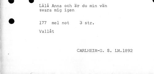 //// Låla Anna och är du min vän //// svara mig igen //// ^ 177 mel not 3 str. //// Vallat //// CARLHEIM-G. S. LM.1892 //// fR&y - //// t ////