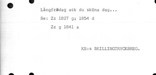 //// Långfredag ack du sköna dag... //// Se: Zz 1827 g; 1854 d //// Zz g 1841 a //// i ' ' //// . //// KB:s SKILLINGTRYCKSREG. ////