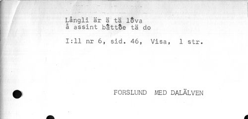 //// H * - - * //// m , - , —, //// ; Långli är ä tä lova //// å assint båttoe tä do //// 1:11 nr 6, sid. 46, Visa, 1 str. //// FORSLUND A€D DALÄLVEN //// * < ////