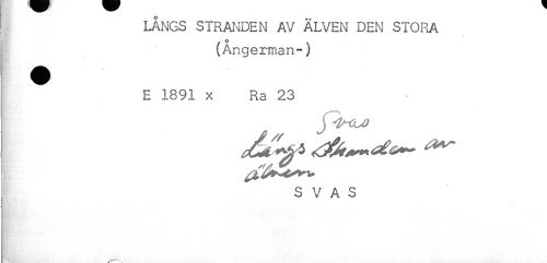 //// j LÅNGS STRANDEN AV ÄLVEN DEN STORA //// j (Ångerman-) //// I E 1891 x Ra 23 //// S V A S //// * ////