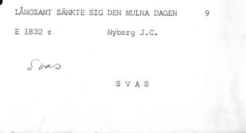 //// LANGSAMT SÄNKTE SIG DEN MULNA DAGEN 9 //// E 1832 z Nyberg J.C. //// Jl^O //// S V A S ////