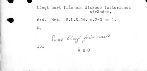 //// Långt bort från min älskade fosterlands //// stränder, //// ^ 6:4. Net. S,L.S.24. s.2-3 nr 1. //// N. //// 161 //// A B 0 ////