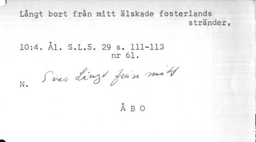 //// Långt bort från mitt älskade fosterlands //// stränder, //// i //// ) //// 10:4. Ål. S.L.S. 29 s. 111-113 //// nr 61. //// ÅBO //// ! //// t //// ) ////