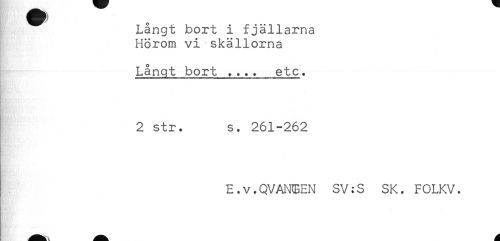 //// Långt bort i fjällarna //// Hörom vi skällorna //// Långt bort .... etc. //// . //// . //// - //// 2 str. s. 261-262 //// E.v.QVAMEEN SV:S SK. FOLKV. ////