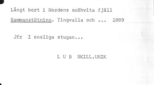//// Långt bort i Nordens snöhvita fjäll //// Sammanstötning. Tingvalla och ... 1889 //// Jfr I ensliga stugan... //// L U B SKILL.UNIK ////