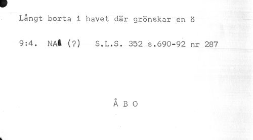 //// Långt borta i havet där grönskar en ö //// 9:4. NA* (?) S.L.S. 352 s.690-92 nr 287 //// ÅBO ////