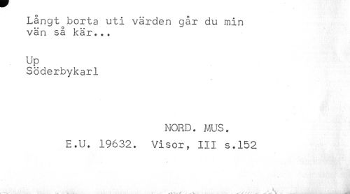//// Långt borta uti värden går du min //// vän så kär... //// Up //// Söderbykarl //// NORD. MUS. //// E.U. 19632. Visor, III s.152 //// . k ////
