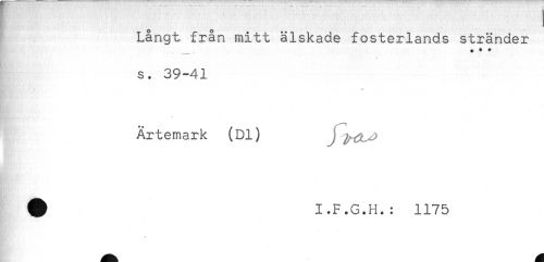 //// Långt från mitt älskade fosterlands stränder //// * * * //// * //// s. 39-41 //// Ärtemark (Dl) //// # I.F.G.H.: 1175 ////