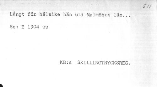 //// r //// //Långt för hälsike hän uti Malmöhus län... //// - //// Se: E 1904 uu //// t //// t //// KB:s SKILLINGTRYCKSREG. ////