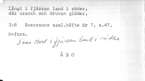 //// Långt i fjärran land i söder, //// där uranch och druvan glöder, //// 3:8 Svenssons saml.häfte Nr 7. s.47. //// H-fors ^ //// < //// ÅBO //// i //// I ////
