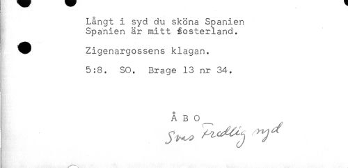 //// j Långt i syd du sköna Spanien //// I Spanien är mitt fosterland. //// Zigenargossens klagan. //// 5:8. SO. Brage 13 nr 34. //// ÅBO ////