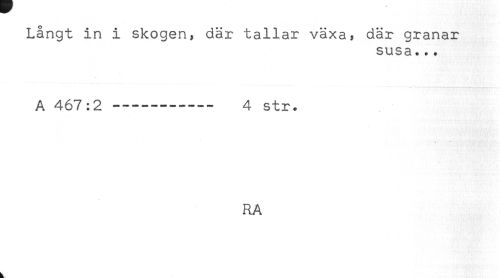 //// Långt in i skogen, där tallar växa, där granar //// susa... //// A 467:2 ------ 4 str. //// RA ////