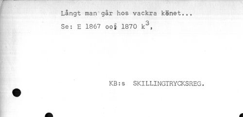 //// Långt man^gar hos vackra könet... //// Se: E 1867 oo§ 1870 k^, //// KB:s SKILLINGTRYCKSREG. ////