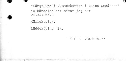 //// "Långt upp i Västerbotten i sköna Umeå----" //// en händelse har timar jag här //// ^ omtala må." //// # //// Kärleksvisa * //// : //// Löddeköping Sk. //// ^ L U F 2340:75-77. //// ! //// ^ . * # . , t - - ' -* ** * ' < ' 1 * -* ^ * * ^ ' * - ' ' - ** -* '** ' * S - -** ////