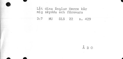 //// Låt dina änglar Herre kär //// mig skydda och försvara //// 3:7 MU SLS 22 s. 429 //// ! ////