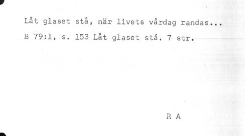 //// Låt glaset stå, när livets vårdag randas... //// B 79:1, s. 153 Låt glaset stå. 7 str. //// R A ////