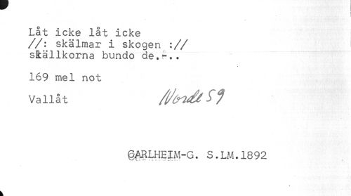 //// * < //// Låt icke låt icke //// //: skälmar i skogen :// i //// skällkorna bundo de.r.. //// 169 mel not //// Vallåt //// §^RLHEIM-G. S.LM.1892 ////