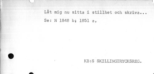 //// Låt mig nu sitta i stillhet och skriva... //// Se: N 1848 b; 1851 a, //// < //// ^ KB:S SKILLINGTRYCKSREG. ////
