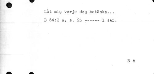 //// Låt mig varje dag betänka... //// B 64:2 a, s. 26 ------ 1 s%r. //// R A ////