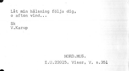 //// Låt min hälsning följa dig, //// o afton vind... //// Sk //// V.Karup //// NORD. ?&JS. //// E.U.22015. Visor, V. s.351 ////