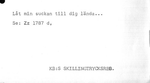 //// Låt min suckan till dig lända... //// Se: Zz 1787 d, //// /* //// KB:S SKILLINGTRYCKSREG. ////