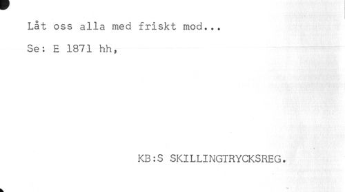 //// Låt oss alla med friskt mod... //// Se: E 1871 hh, //// * //// KB:S SKILLINGTRYCKSREG. ////