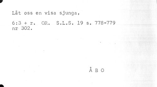 //// Låt oss en visa sjunga, //// 6:3 + r. OR. S.L.S. 19 s. 778-779 //// nr 302. //// * ////