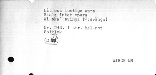 //// Låt oss lustiga wara //// Skola intet spara //// Wi ska' svinga svänga) //// . //// Nr. 243. 1 str. Mel.not //// Folklek //// (DW) //// - ////