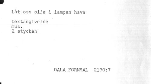 //// Låt oss olja i lampan hava j //// i //// ! //// < //// textangivelse //// mus. //// 2 stycken //// i //// - //// i //// ! //// ! //// DALA FORNSAL 2130:7 ////