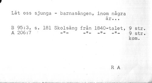 //// Låt oss sjunga - barnasängen, inom några //// år.. . //// B 95:3, s. 181 Skolsång från 1840-talet, 9 str. //// A 206:7 ' -"- 9 str. //// kom. ////