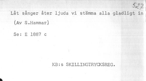 //// Låt sånger åter ljuda vi stämma alla gladligt in ^ //// < //// (Av S.Hammar) ' //// Se: E 1887 c ////