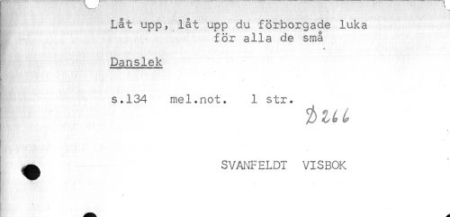 //// I Låt upp, låt upp du förborgade luka //// ' för alla de små //// ! Danslek //// s.134 mel.not. 1 str. //// ! //// Ejr //// /