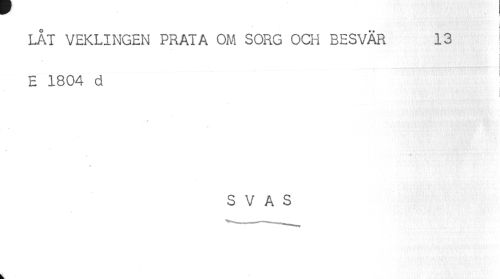 //// LÅT VEKLINGEN PRATA OM SORG OCH BESVÄR 13 //// t //// - //// t //// E 1804 d //// if- //// < //// S V A S ////