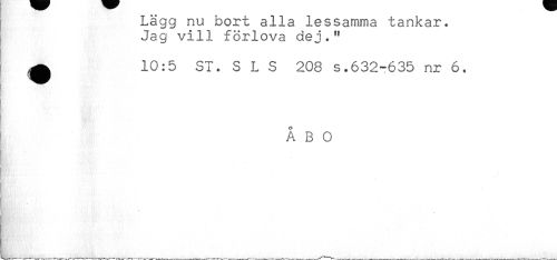 //// Lägg nu bort alla lessamma tankar. //// Jag vill förlova dej." //// Tn*!* //// ^ 10:5 ST. SLS 208 s.632-635 nr 6. //// ÅBO ////