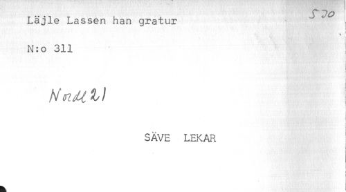 //// Läjle Lassen han gratur //// N:o 311 //// i' //// . //// . ! //// ! //// SÄVE LEKAR //// * * : //// ) ////