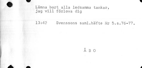 //// ^ Lämna bort alla ledsamma tankar, //// jag vill förlova dig //// 13:4? Svenssons saml.häfte Nr 5.s.76-77. //// ÅBO ////