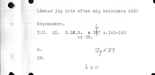 //// Lämnad jag inte efter mig bolstrena blå? //// Styvmodern. //// v //// 2:2. Hl. S.LK.S. s 3^7 s.162-163 //// nr 38. //// 29. ////