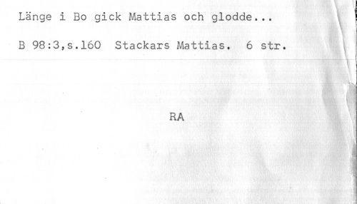 //// Länge i Bo gick Mattias och glodde... {! //// B 98:3,s.l60 Stackars Mattias. 6 str. ^ //// RA //// < ////